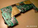 - тонкий монтажный провод в изоляции (типа МГТФ и др.).1. Перережьте печатные проводники на лицевой стороне платы в местах, показанных на фотографиях.